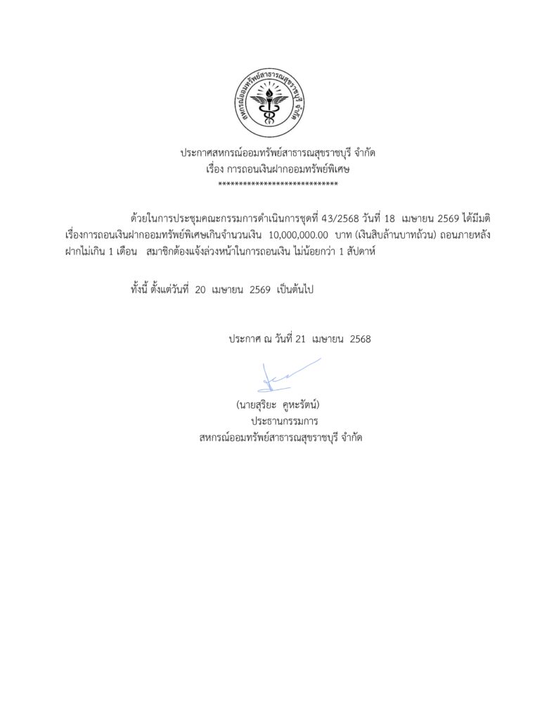 ประกาศสหกรณ์